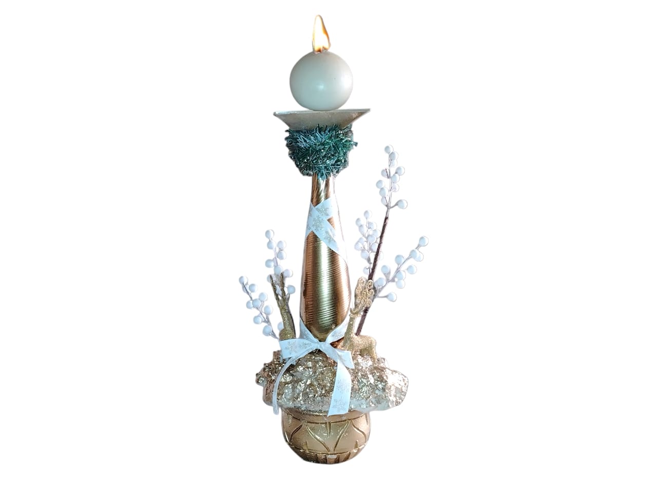 gold ceramic vase for canle holder with garland and white cherries size:55*24cm
